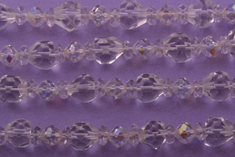 A stunning long vintage necklace made from different shaped beads in cut lead crystal. Circa 1950.