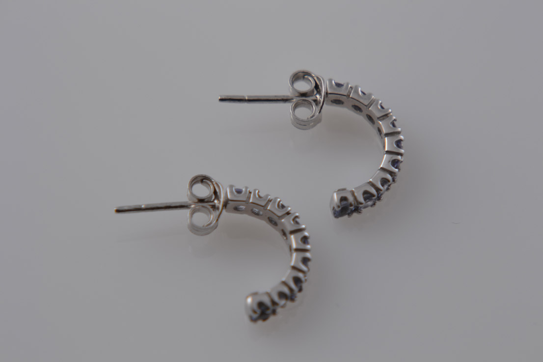 A pair of half-hoop stud earrings. 9ct white gold set with tanzanite.