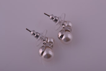 A classic pair of modern stud earrings set with faux pearls and white paste.