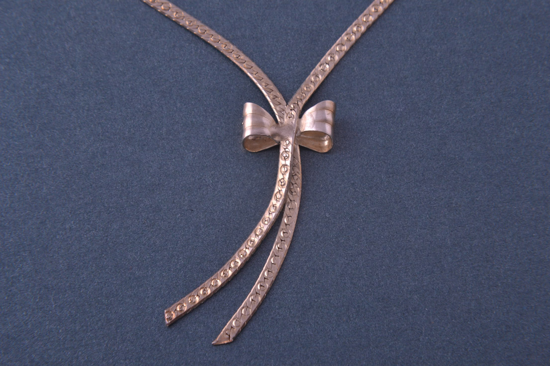 About: Silver Modern Flat-Link Chain Bow Necklace