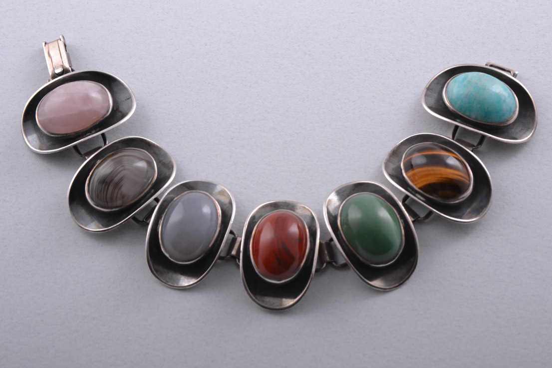 A superb retro bracelet. Silver set with semi-precious stones. Signed "WWL".