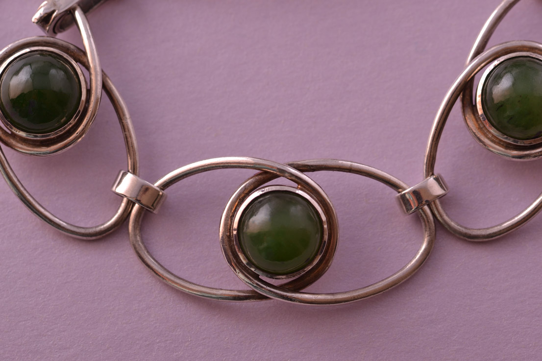 A retro silver bracelet set with genuine semi precious stones.