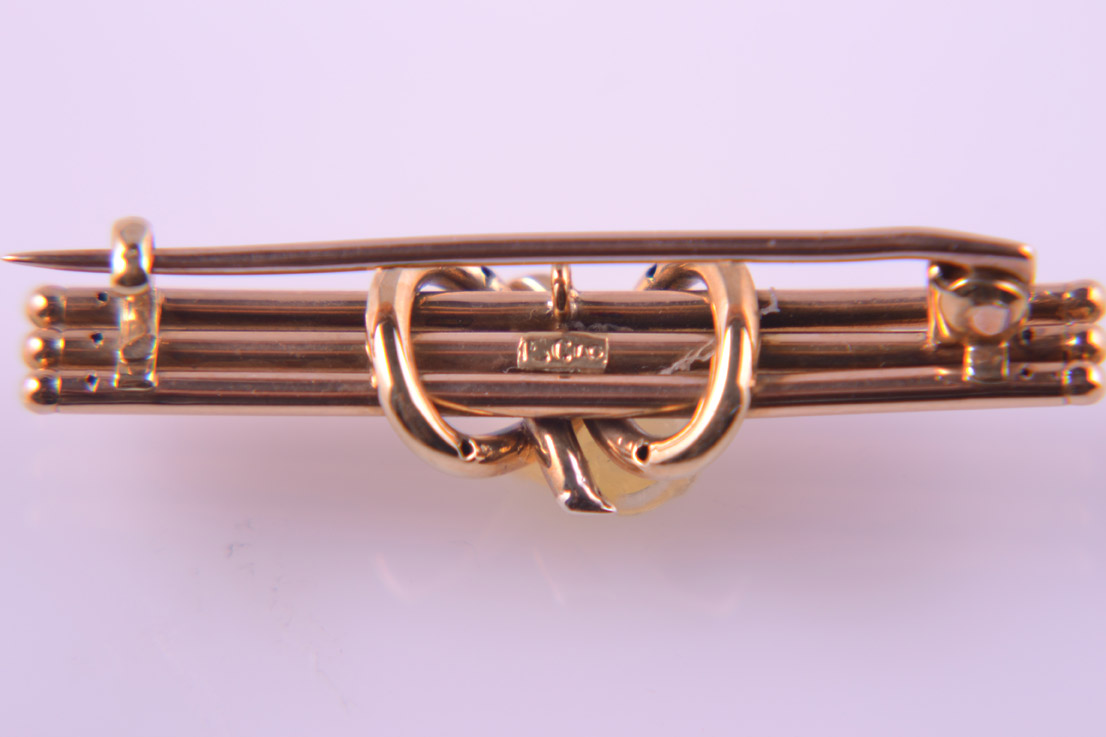 A handsome Victorian brooch in 15ct yellow gold. 3 bars across encompassed by a figure 8 design.